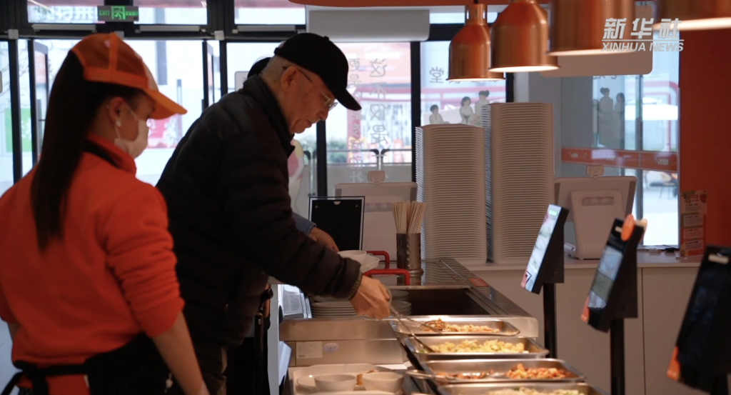 每天中午,在重庆市观音桥街道渝北社区的数字化食堂,不少老年人到这里用餐。食堂实现了智能无感支付,无需带手机,人脸识别用餐人信息,系统自动按克称重计算,智能结算。
